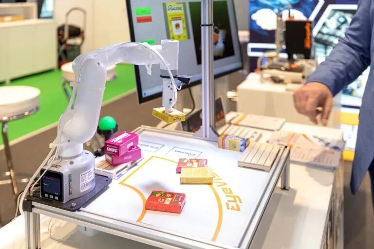 在瑞士 Ricola 糖果分拣线上,混合着多种糖果的物料流高速通过检测区域。EVT部署的三位一体系统展现出惊人效能:AI通过外观特征快速完成糖果种类识别,3D视觉系统同步获取空间坐标,机器人根据前两者数据调整吸盘角度与力度,实现高分拣准确率和强大的处理能力。这种协同模式同样适用于复杂的工业零件 bin picking 场景,使曾经被视为"自动化禁区"的无序抓取成功率大幅提升。